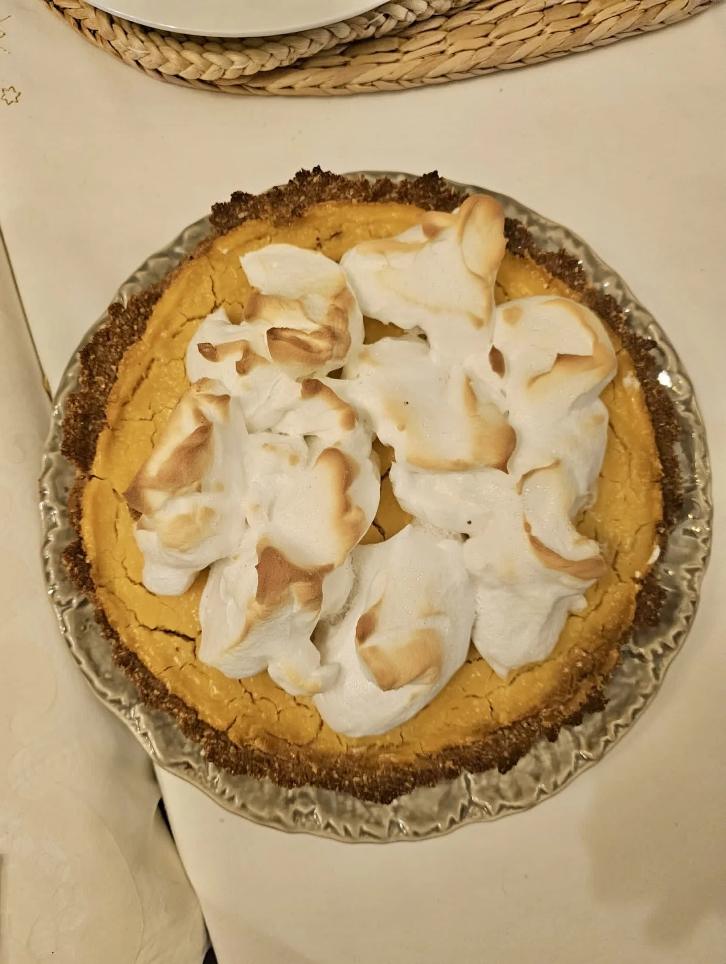 Para o merengue bater 3 claras em castelo com 50g de açúcar ou adoçante granulado.