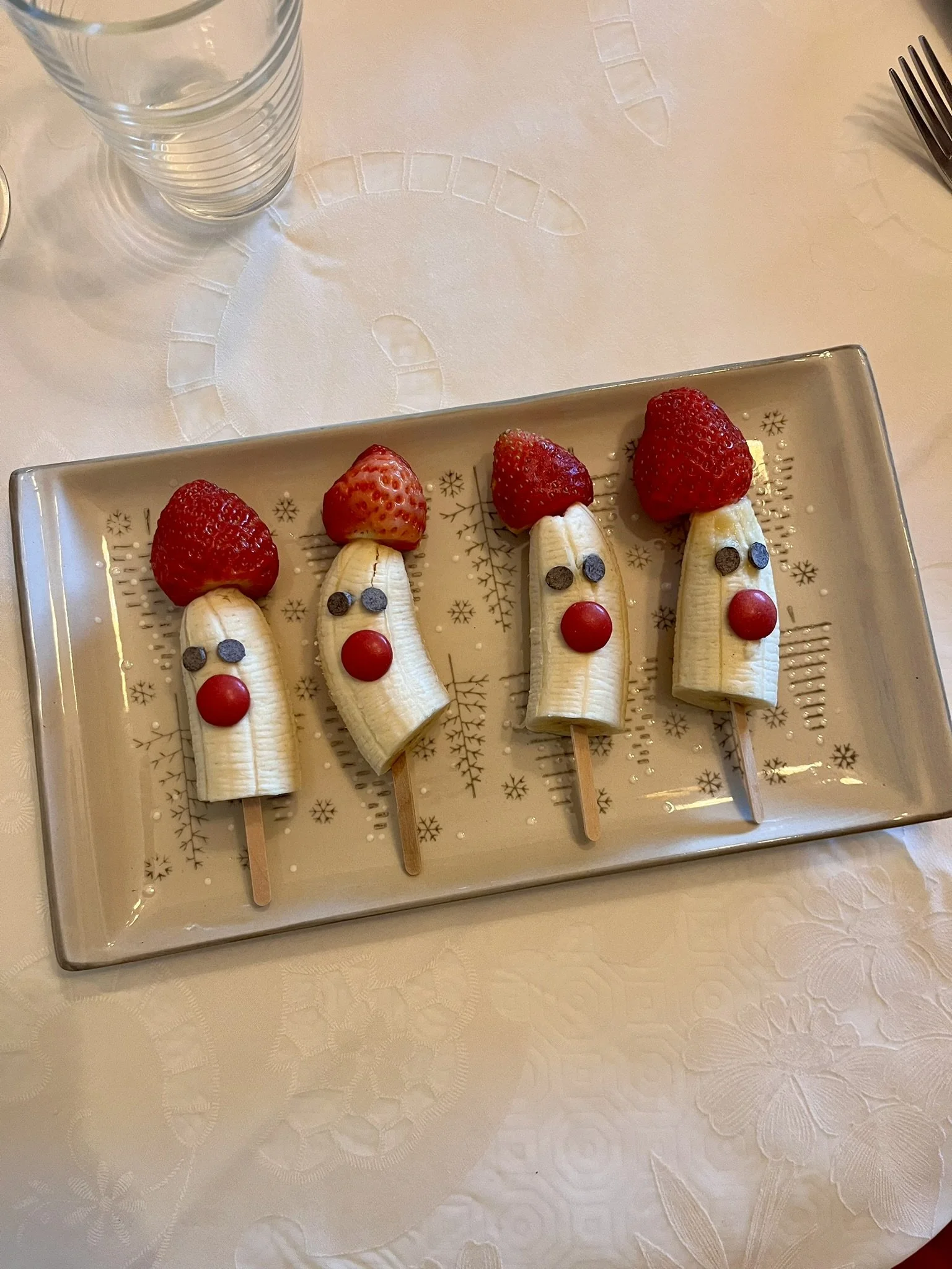 E com meio termo, fruta não podia faltar e depois umas sobremesas com um misto saudável.