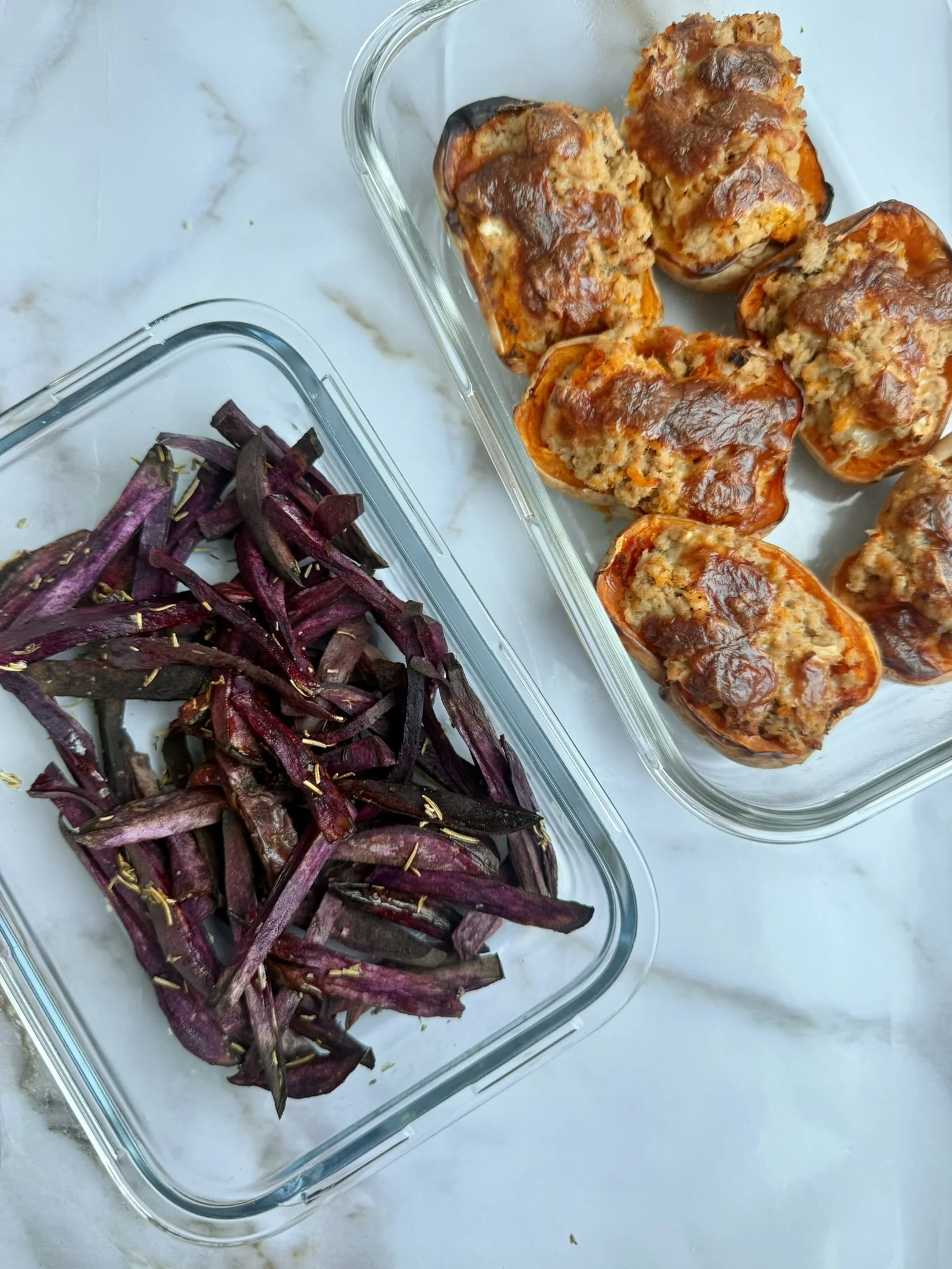 Hoje foi dia de adiantar umas marmitas para a semana: um prato, uma ideia de pequeno-almoço e um snack. Mesmo que não dê para toda a semana, orienta os primeiros dias.