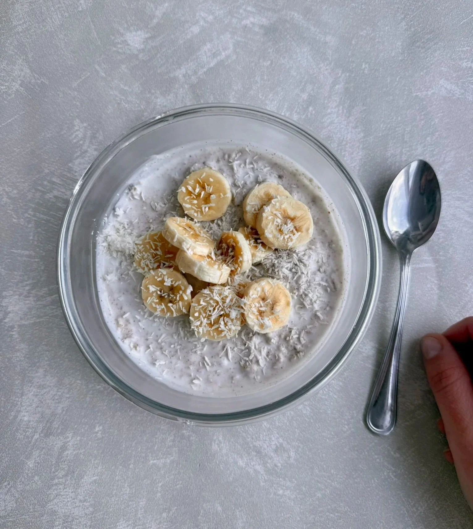 Que é nada mais nada menos do que juntar o kefir com flocos de aveia e canela e deixar repousar no frigorífico umas horas. A aveia irá amolecer e criar uma espécie de papa.