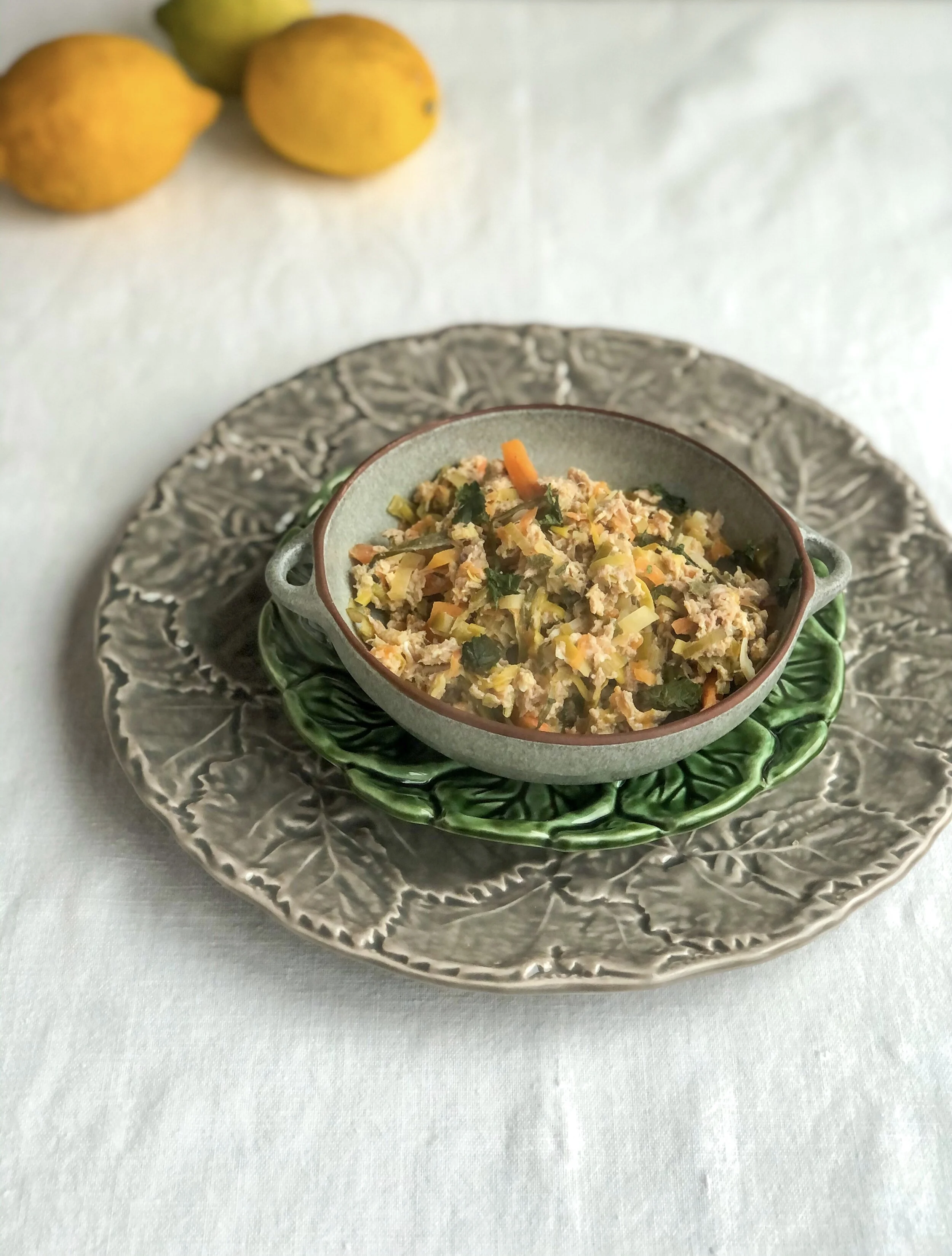 Num tacho, estufar os legumes anteriormente cortados com azeite, vinho branco e as especiarias.