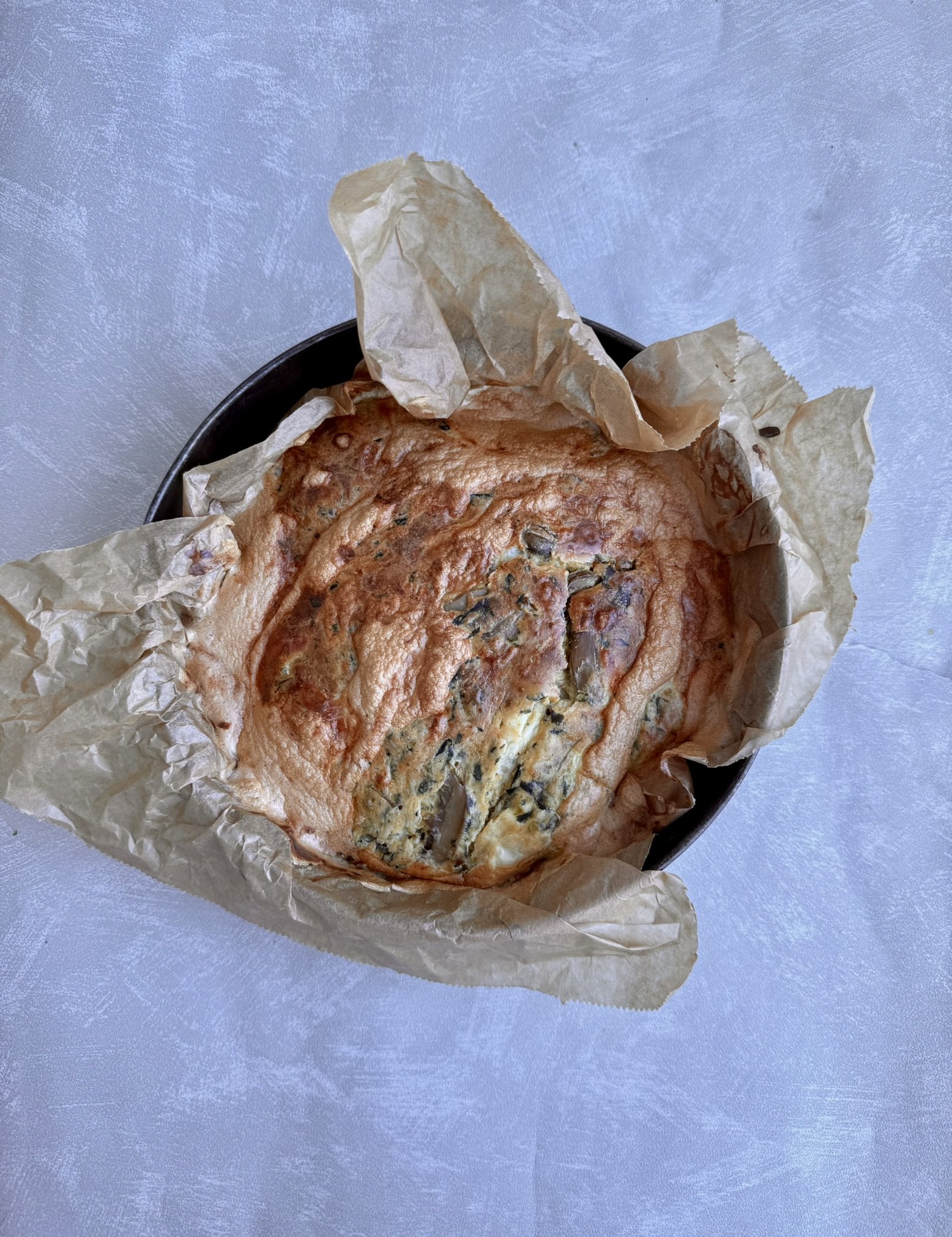 Começar por saltear 1 lata de cogumelos e 2 mãos de espinafres frescos com um fio de azeite. Reservar.